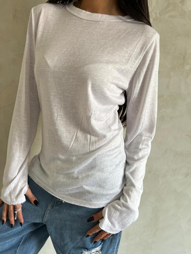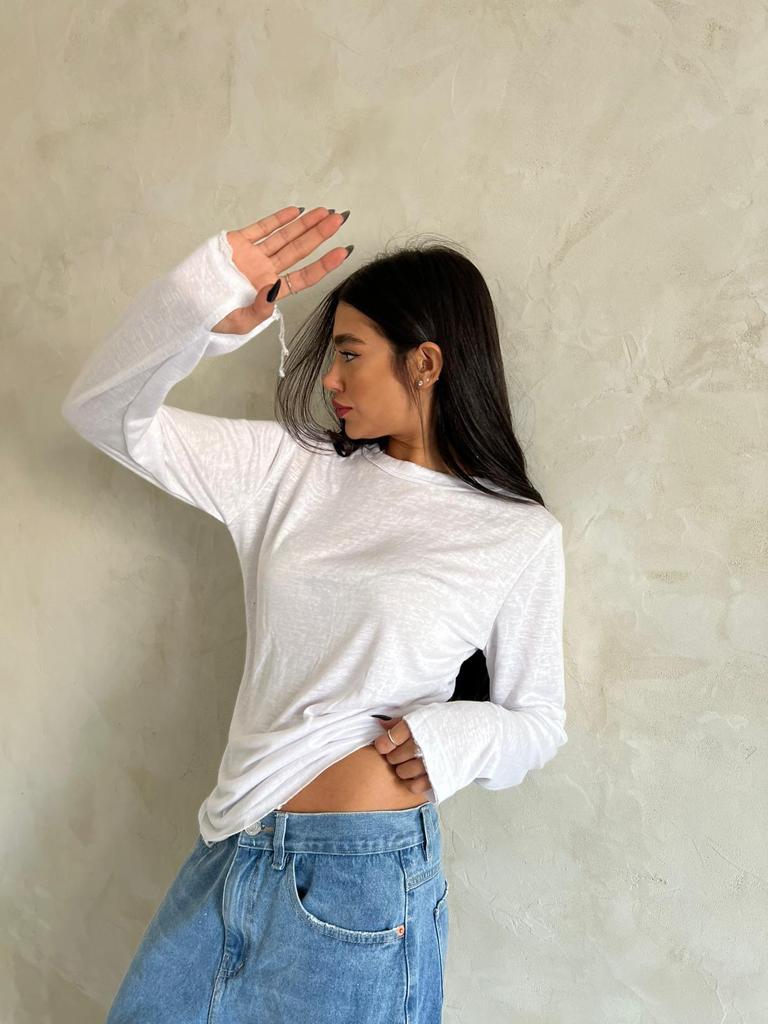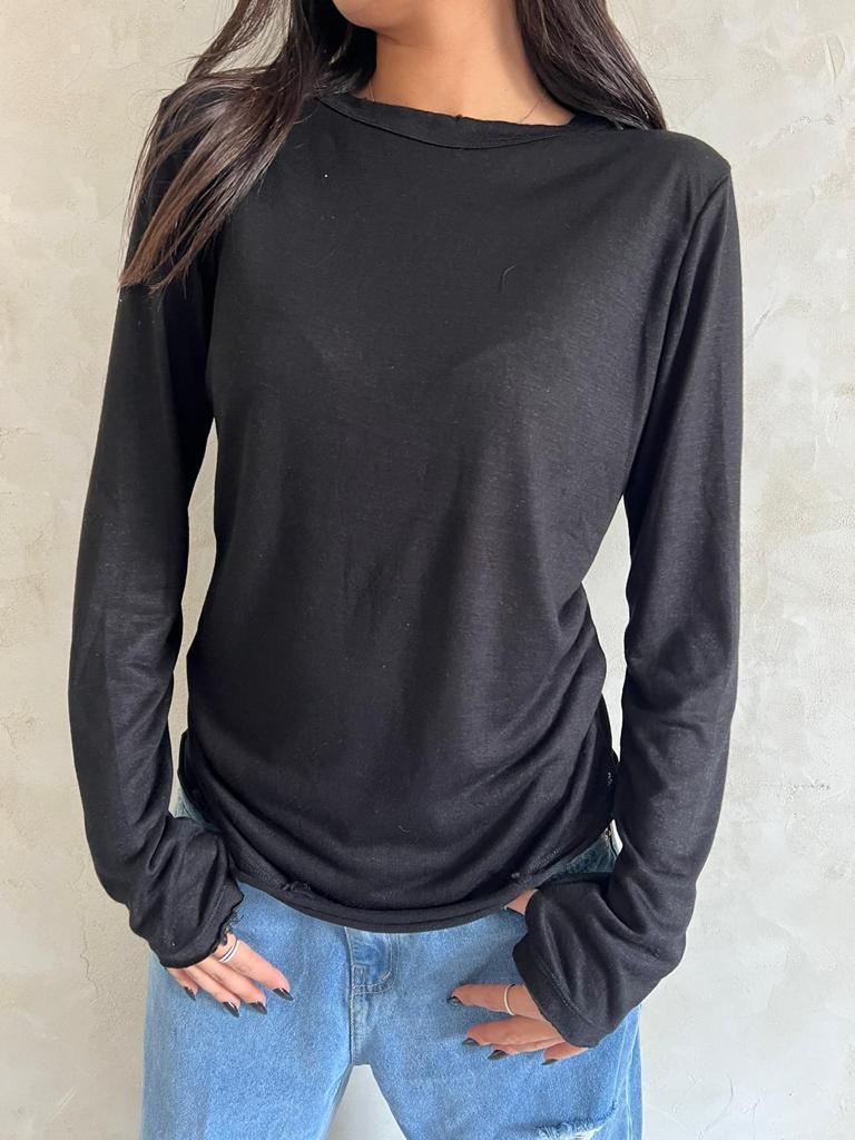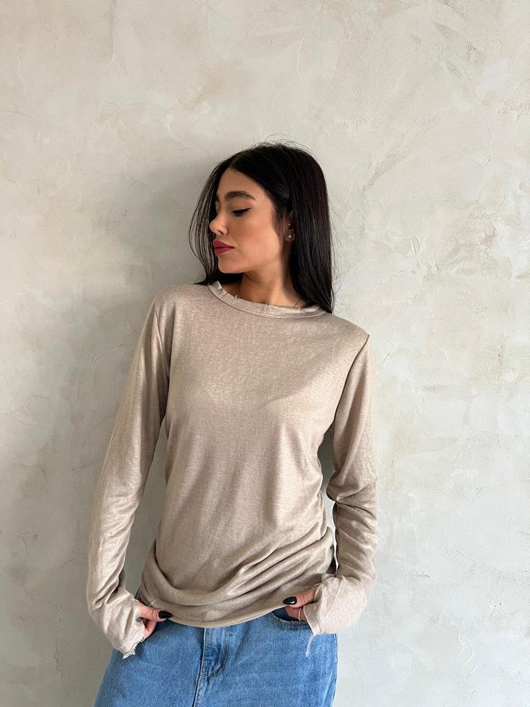 חולצה סריג פשתן צווארון ניקי עם קרעים
