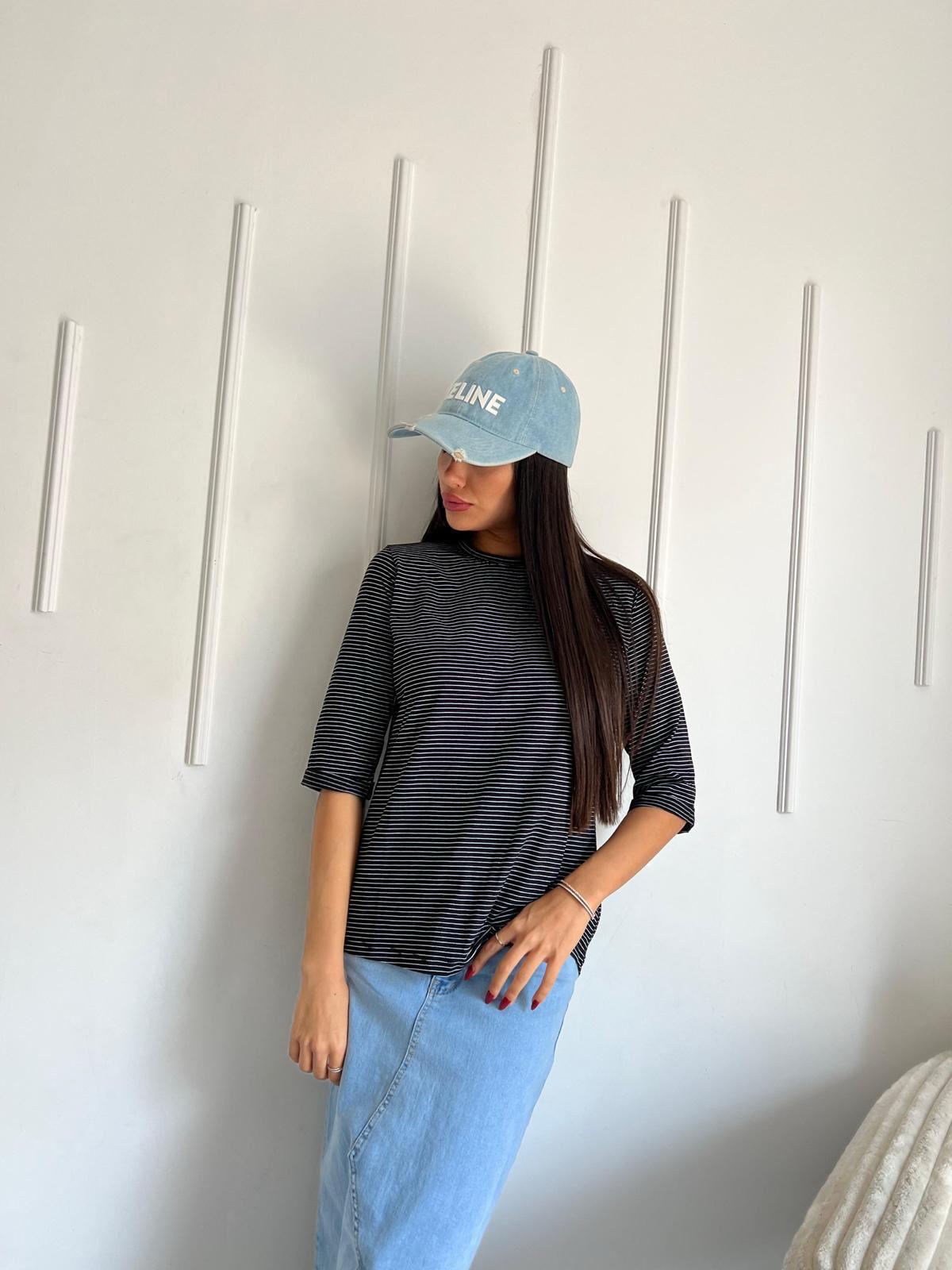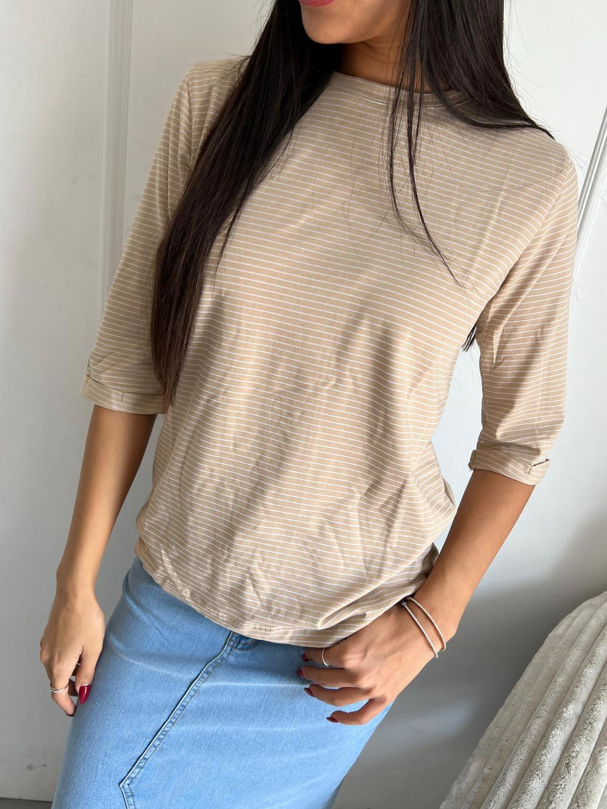 חולצה 3/4 קיפול בשרוול פסים עבים